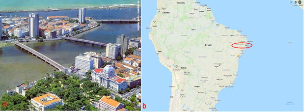 Recife, the capital of the state of Pernambuco, is popularly known as the “Brazilian Venice” because of its buildings along rivers and by the sea, and its numerous bridges that dominate the urban landscape, being one of the cities with most urban equipment in contact with sea water. Figure 1 shows a panoramic view of the municipality of Recife.