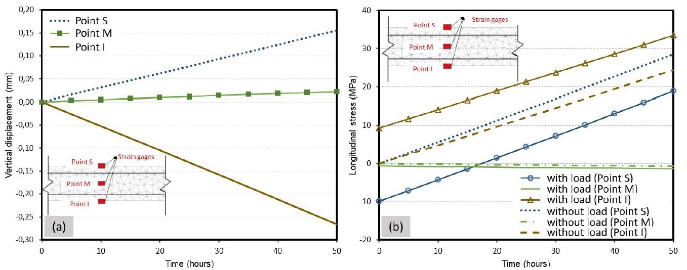 | Figure 14. (a) Vertical beam displacement: (a) for 50 years e (b) at the time (mm). | ||||