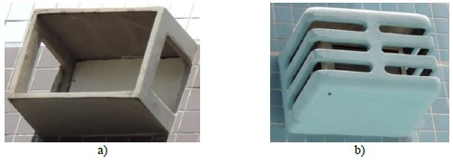 | Figura 3. Suporte de concreto armado, tipo janela: a) modelo aberto; b) modelo fechado | ||||