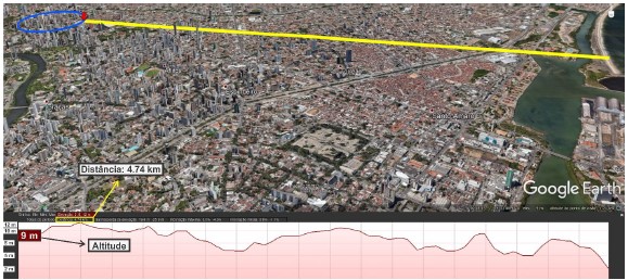 Devido a Recife estar em uma região litorânea, fato este próximo ao mar, foi demonstrada a distância entre a região pesquisada e o arrebentamento das ondas do mar, os quais pode indicar um ataque de íons cloreto (névoa marinha), Figura 10.