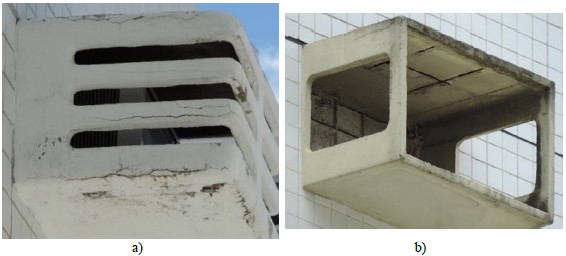 | Figura 14. Utilização inadequada: a) esforços não dimensionados; b) infiltração na fachada | ||||