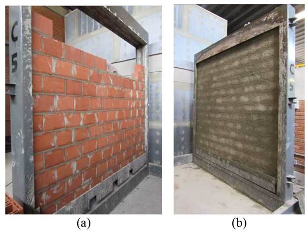 Para la ejecución del ensayo experimental se aplicaron ladrillos cerámicos de 8 MPa resistencia característica a la compresión, con furos verticales, dimensiones de14 x 1 9 x 29 cm y con junta de mortero con cemento, arena y cal, con 4 MPa de resistencia a la compresión media, además de aditivos para aireadores, estabilizador de hidratación y retenedor de agua.