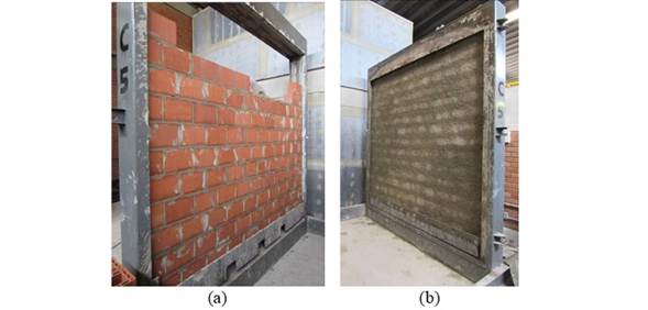 For the execution of the experimental test wall, ceramic blocks with fbk 8 MPa were used, containing vertical holes and dimensions of 14 x 19 x 29 cm, and also with laying mortar joint of cement, sand and lime, with 4 MPa of medium compressive strength, in addition to aerator additives, hydration stabilizer and water retainer.