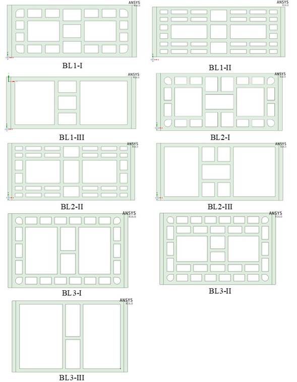 Table 4 shows the nomenclatures, measurements and void volume (%) calculated for each type of ceramic block.