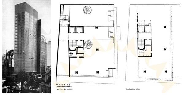 View of the Wilton Paes de Almeida building and ground floor and typical stories (source: Revista Acrópole, 1965) |
