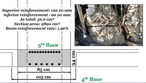Still in the collected column section, it was found a column-slab intersection, and its evident reinforcement. Therefore, it was possible to determine the arrangement of the reinforcement of the strip-beam (Figure 12).