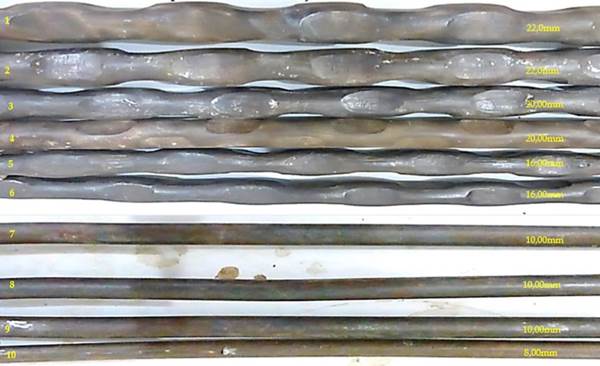 The steel used in the WPA reinforcement was of two types, and they were named notched and smooth due to their surface conformation. Due to the original format, the rebars "notched" presented with depressions arranged uniformly so vary their angle of 90º, as shown in Figure 14.