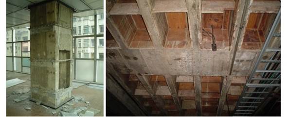 Juntamente a essas plantas foram verificados nos arquivos da SPU (Secretaria do Patrimônio da União) diversos projetos de adequações feitas e propostas durante os anos de operação do edifício que foi sede da Polícia Federal, da Caixa Econômica e outras empresas. O engenheiro Leandro Coelho da SPU cedeu fotos de seu acervo pessoal tiradas ao longo dos anos, onde foi possível confirmar, com algum grau de precisão, a tipologia estrutural empregada no edifico Wilton Paes de Almeida (Figura 6).