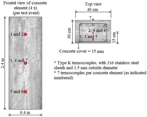 | Table 2. Temperatures of thermocouples positioned on the reinforcement (concrete cover region), at 120 min of test. | ||||||||||