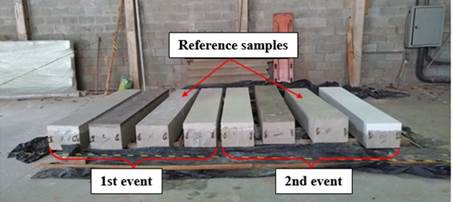 After the construction of the eight elements, a 6-month period of concrete hydration degree was waited for the application of fire protective coating systems (preparation of base and coating layer itself). During these six months the elements were stored inside the shed and protected with a non-adherent plastic tarp, just to prevent impregnation of dirt on the surface or other types of damage or even vandalism. In March 2018, as planned, all fire protective coatings were applied.