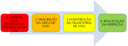 | 1. Análisis de las interacciones dinámicas del vuelo | En esa etapa es necesario verificar la regulación sobre el uso de VANT en el local donde será hecha la inspección, además de un estudio sobre las condiciones climáticas de la fecha, y configuración del objeto a ser estudiado (área, cantidad de pavimentos, límite máximo), y así, proceder con la elección de los equipos. | |||||||||||||