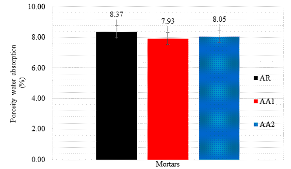 | Figure 9. Porosity water absorption test or pressure water absorption (%) results in mortar specimens immersed in water at 28 days. | ||||