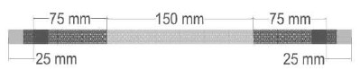 Marcação da área desprotegida de 150 mm no centro da barra (zona de estudo).