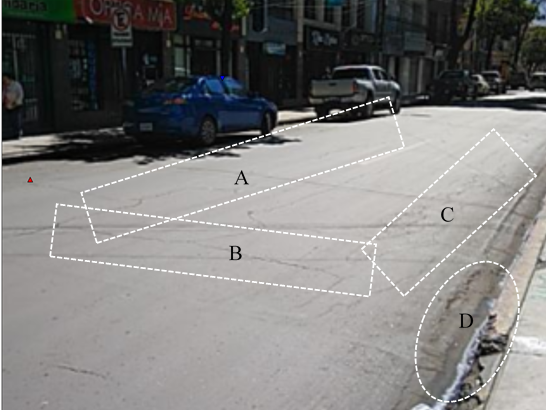 Cada seção de estudo foi dividida em duas áreas para a obtenção de termogramas. A Figura 1 mostra as áreas onde as imagens termográficas foram obtidas: a Zona 1 está localizada na Avenida San Martin, na esquina da calçada Jordán Sudeste, de onde são obtidas imagens panorâmicas de todo o quarteirão; A Zona 2 está localizada no meio do trecho 1, avenida San Martin, entre a rua Jordán e a zona leste de Sucre; A Zona 3 está localizada no cruzamento da Avenida San Martin com Heroinas no plantador central, e a Zona 4 está localizada no meio da Seção 2, Avenida San Martin, entre a Avenida Heroínas e a Calle Colômbia.