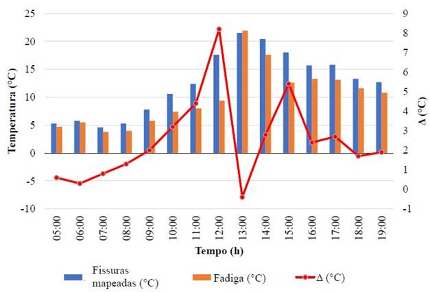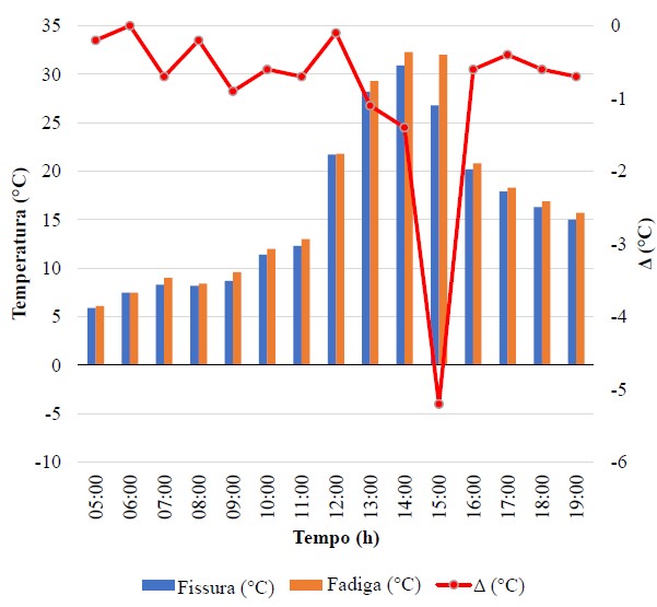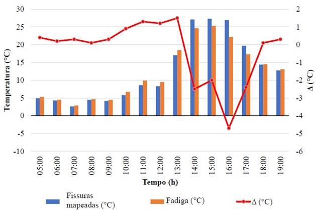 Para obter a diferença de temperatura, foi utilizada a equação (2), expressão proposta na literatura para a análise qualitativa e quantitativa dos resultados (Washer et al., 2010; Farrag et al., 2016; Rocha et al., 2017).