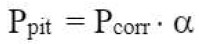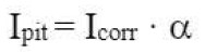 Onde α é o “fator de pite” (consulte a tabela 1), responsável pela profundidade máxima do pite. Ou seja, a profundidade máxima do pite é ( vezes mais profunda do que se a corrosão fosse homogênea. O valor médio é α = 10, embora possa variar no caso de ataque de cloreto de 3 a 15 vezes.