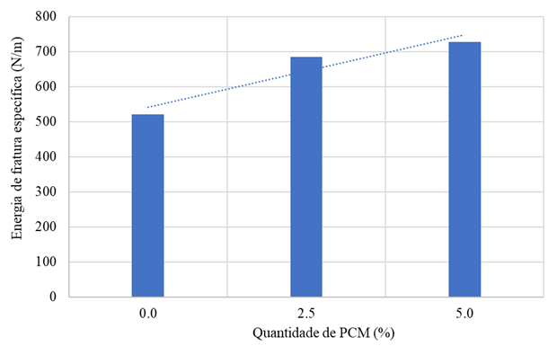Figura 5. Relação de energia específica de fratura com a taxa de PCM dos painéis.