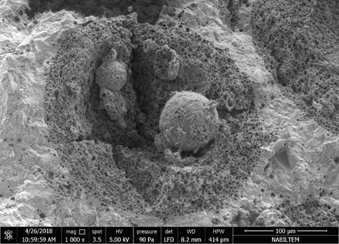 A micrografia do PCM microencapsulado na matriz de cimento é mostrada na Fig. 6. Quando olhamos para a Fig. 6, pode-se dizer que o PCM microencapsulado fornece boa ligação com a matriz de cimento e não há fissuras na interface. No entanto, observa-se que o PCM mantém sua forma esférica. Isso mostra que PCMs microencapsulados durante a mistura, processamento e cura podem ser usados sem deterioração.