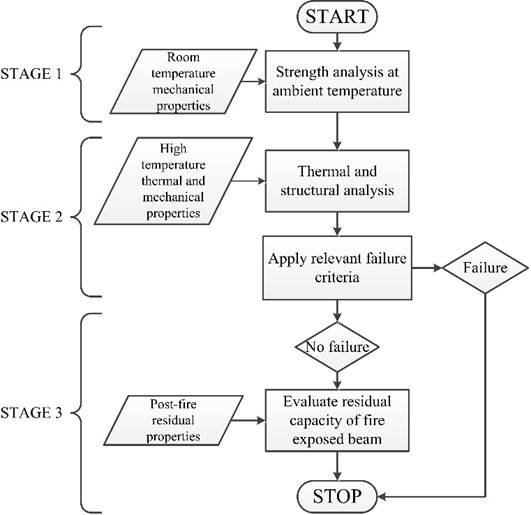 The behavior of a RC member after fire exposure generally depends on parameters such as load level, temperatures experienced within the member during fire exposure, the rate of cooling and strength recovery after fire. A general approach comprising of three stages, which incorporate the interdependency of these parameters in evaluating residual capacity of RC members, is presented in this section.