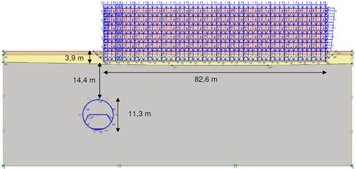 As tensões e deslocamentos no túnel foram obtidos antes, durante e após a construção do edificio por meio de um método de cálculo de elementos finitos na hipótese de deformação plana. O programa de computador usado é o PLAXIS v8.