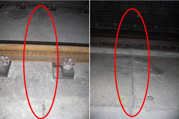 | Figura 4. Juntas na laje da via, existentes a cada 25m. | ||||