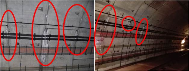Na leitura zero inicial com a fibra óptica, é feita uma lista das disfunções atuais (fissuras, umidade, fissuras, rugosidade anormal, etc.) A Figura 4, a Figura 5 e a Figura 6 mostram algumas das disfunções detectadas na coleta inicial de dados.