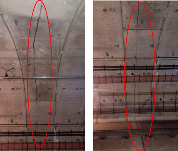 | Figura 11. Procedimento de aderência de fibra ótica na laje da via 2 e na abóbada do túnel. | ||||