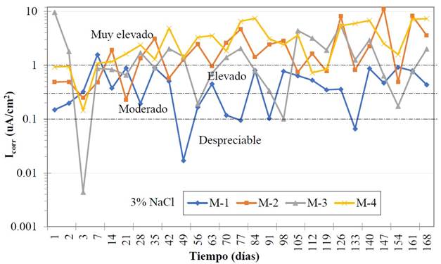 | icorr (µA/cm2) | Nivel de corrosión | |||||||||||||
