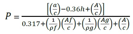 La medición del contenido de aire se realizó por el método de presión y se utilizó el recipiente tipo B (ASTM C-231, 2017). La porosidad del concreto (P) o total de huecos en el material compuesto, se ha modelado (1) como una función de: la relación agua/cemento, el grado de hidratación del cemento (h), el volumen de aire atrapado (A), las cantidades de agregados fino (arena, Af) y grueso (grava, Ag), y del cemento (c); y las gravedades específicas de los agregados (ρf y ρg). En este estudio se aplicó el valor de 0.7 para hidratación del cemento (Solís-Carcaño y Moreno, 2006).