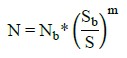 Donde D: representa el daño acumulado; n i : número de ciclos aplicados en el i-ésimo nivel de tensión; N i :: vida en fatiga del i-ésimo nivel de tensión que corresponde al número de ciclos hasta la falla en ese nivel; N: número de ciclos asociados a la ruptura por fatiga; Nb: constante adimensional que viene de las curvas S-N, de la Norma (ABNT NBR 6118, 2014); Sb: constante con unidad de tensión; S: tensión en el material; y, m: exponente de la curva de fatiga.