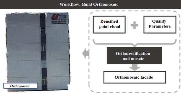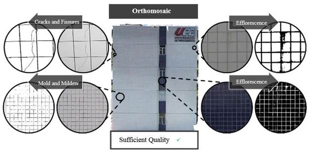 Orthomosaics of each building facade were created to provide stronger and more useful results. These orthorectified images are of enough quality to allow for the detection of pathological manifestations through visual inspection.