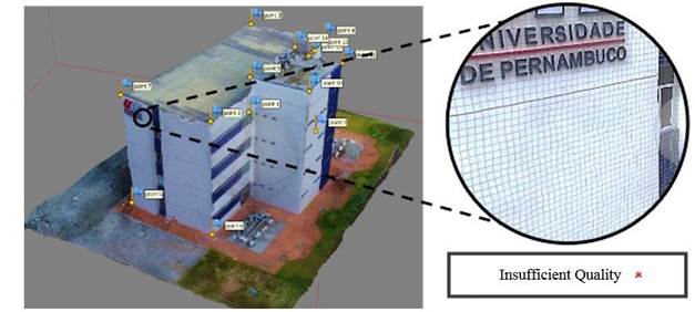 However, the quality of this model is insufficient for the purpose of detecting pathologies on the facade, due to distortions on the texturized facades.