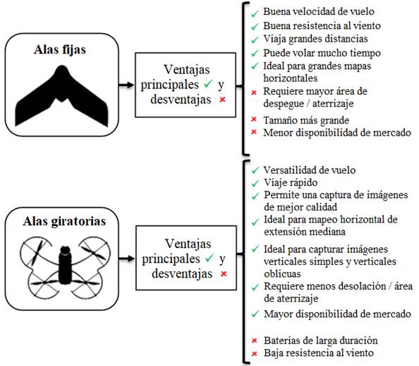 | Figura 1. Ventajas y desventajas del VANT en Función al tipo de alas. | ||||