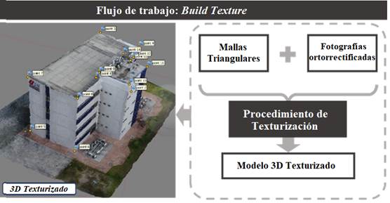 En la cuarta etapa, el objetivo es solamente aplicar una textura en el modelo tridimensional para mejorar su aspecto visual, con el propósito de permitir la visualización de fallas en la fachada. El modelo 3D texturizado generado en esta etapa es presentado en la Figura 9.