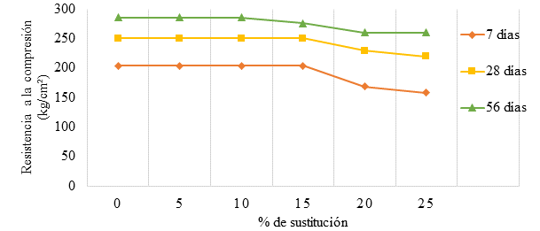 En el caso del concreto se ha comprobado que es proporcional la pérdida de resistencia con el incremento de la sustitución de polvo de mármol. Se demostró que el porcentaje máximo de sustitución de polvo de mármol por cemento es del 10 % para que la resistencia no se vea afectada.