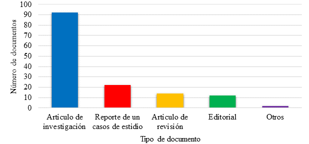 | Figura 5. Distribución de documentos por tipos de artículo (Datos cortesía de Scielo Analytics) | ||||