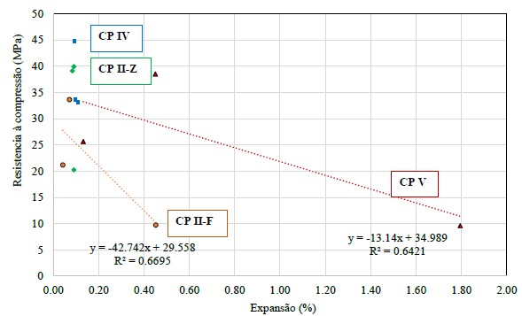 | Figura 5. Correlação entre resistência à compressão e expansão | ||||