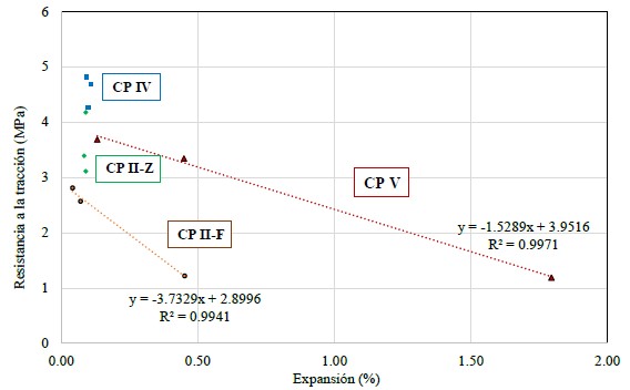 | Figura 6. Correlación entre resistencia a la tracción y expansión. | ||||