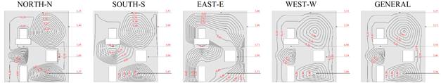 El Potencial de Degradación (DP) en cada región tipificada del edificio se presenta en las Figuras 8 y 9, para cada orientación solar específica y general, para los Métodos de Intensidad e Incidencia.