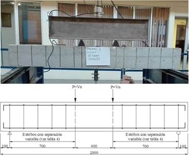 Se propone sustituir parcialmente estribos por fibras de acero para mejorar la resistencia a cortante de vigas. Las variables estudiadas fueron: la relación agua/cemento (a/c) = 0.55 y 0.35, y el volumen de fibra (Vf) = 0, 0.3, 0.5, 0.7% y 0, 0.2, 0.4, 0.6% respectivamente, y la separación de estribos. Los resultados mostraron que la resistencia a cortante con estribos y fibras, fue mayor que la resistencia de las vigas reforzadas con solo estribos. La comparativa entre los datos experimentales y modelos analíticos de predicción de resistencia, mostró que se predice adecuadamente el efecto de la relación (a/c), el Vf, y la aportación del acero longitudinal y transversal. Además, los modelos estudiados predijeron mayormente valores conservadores para la resistencia ultima experimental a cortante.
