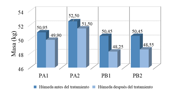 Figura 7. Comparación entre masas húmedas antes y después del tratamiento