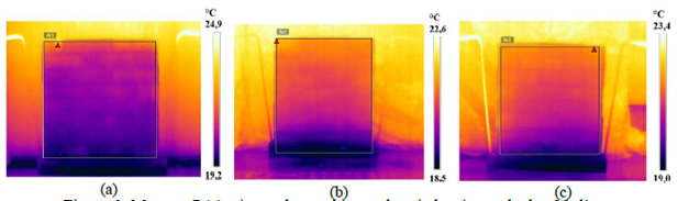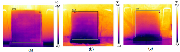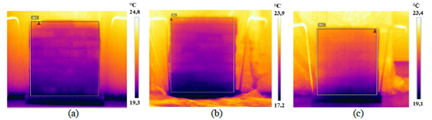 Con el software PSPP2018, se determinaron las temperaturas máximas y mínimas de la pared durante todo el período de prueba. Las escalas de color adoptadas fueron las mismas para todas las imágenes para permitir la comparación visual. Es importante destacar que en esta prueba la cámara solo proporciona el registro del parámetro de temperatura, sin incluir la tasa de humedad ni ninguna otra información. Así, si bien las imágenes contribuyen al diagnóstico, no son necesariamente determinantes en el análisis.