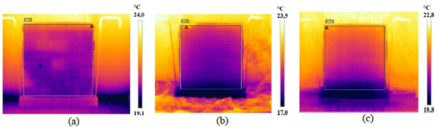 Se utilizó una cámara termográfica FLIR T440 y, durante la captura de imagen, se fijaron algunos parámetros del equipo, como la emisividad (0,81) y la distancia entre la muestra y la cámara (2 m), apuntando a una mejor resolución. La temperatura atmosférica medida por la cámara, en el momento del experimento, era de 23 ° C. Además, para mejorar el rendimiento del equipo, se montó e instaló un fondo oscuro detrás de las muestras, aumentando la nitidez de las imágenes.