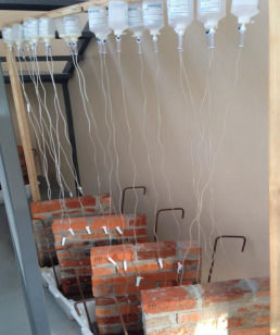 Where “ wm ” represents the wet mass of the wall, “ dm ” the dry mass of the wall and “A” the contact area of the first row of bricks with the humidity.
