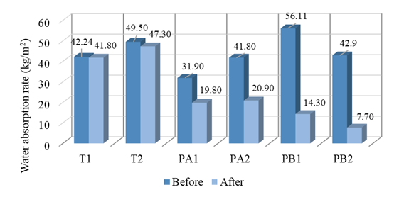 | Figure 5. Mass measurement and water absorption rate before and after treatment. | ||||