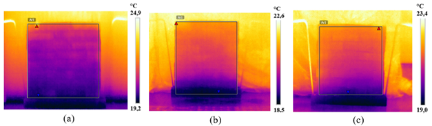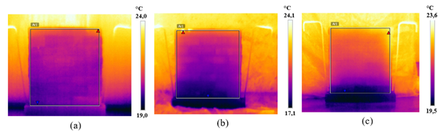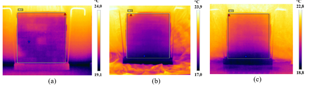 Using the software PSPP2018 the maximum and minimum wall temperatures were determined over the entire test period. The color scales adopted were the same for all images to allow the visual comparison. It is important to note that in this test, the camera provides only the recording of the temperature parameter, not including moisture rate or any other information. Thus, although the images contribute for a diagnosis, they are not necessarily decisive on the analysis