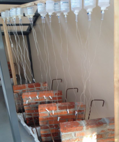 h) O processo de saturação das bases foi repetido, com as paredes tratadas, para quantificar a ação preventiva. Após 8 dias, uma nova medição de massa (massa úmida após o tratamento) foi realizada para calcular a taxa de absorção de água após o tratamento.