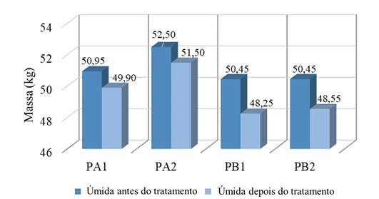 | Figura 7. Comparação entre as massas úmidas antes e depois do tratamento | ||||