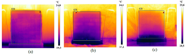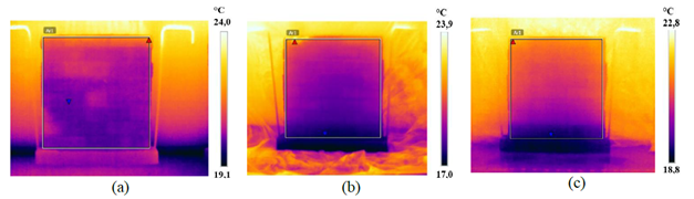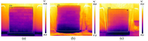 Usando o software PSPP2018, as temperaturas máxima e mínima da parede foram determinadas durante todo o período de teste. As escalas de cores adotadas foram iguais para todas as imagens para permitir a comparação visual. É importante ressaltar que neste teste a câmera fornece apenas o registro do parâmetro de temperatura, não incluindo a taxa de umidade ou qualquer outra informação. Assim, embora as imagens contribuam para um diagnóstico, não são necessariamente decisivas na análise.