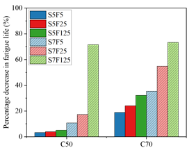 | Figure 9. Variation of fatigue life of concrete C50 and C70 compared to C30. | ||||